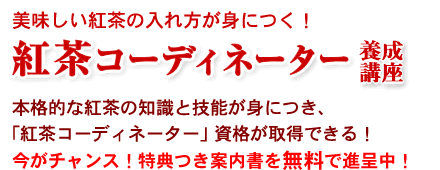 お湯の注ぎ方などの基本から、ダージリン、アッサム、ニルギリなどの茶葉の見分け方や選び方、紅茶の品質を鑑定するティーテイスティングまで、美味しい紅茶を入れるためのプロの技術が身につきます。この講座で学べば、“味がぜんぜん違う!”と実感できるほどの、美味しい紅茶が入れられるようになります。